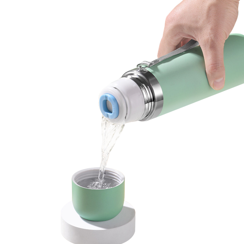 Beachten Sie sein cleveres Design: Der Deckel dient als Tasse. Wenn Sie etwas trinken müssen, schrauben Sie den Deckel einfach ab, und es verwandelt sich in ein handliches Schiff, wodurch das Schlürfen bequem ist, egal ob Sie auf der Arbeit, auf Reisen oder unterwegs sind.
