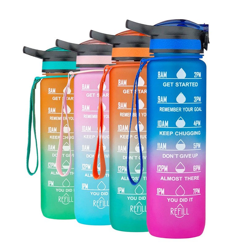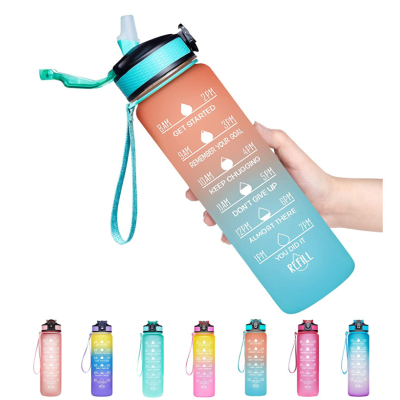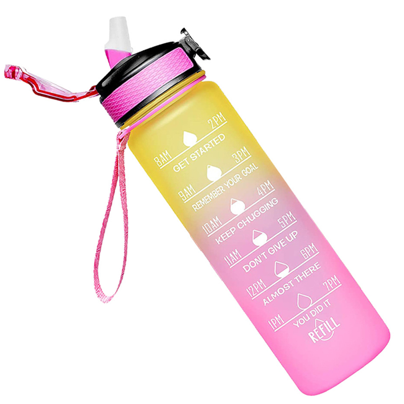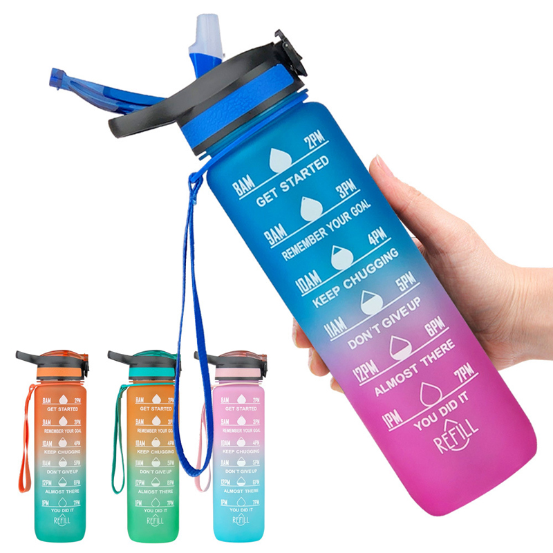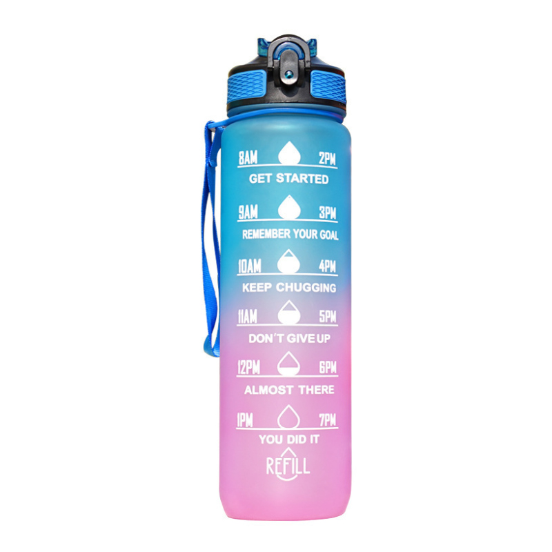Diese 1000-ml-Sportwasserflasche kombiniert die Eigenschaften eines Kunststoff-Weltraumbechers und eines Outdoor-Reisekrugs mit einem Farbverlaufsdesign. Durch sein stilvolles Farbverlaufsdesign eignet es sich perfekt zum Tragen bei Outdoor-Aktivitäten und deckt sowohl den täglichen Flüssigkeitsbedarf als auch die Anforderungen körperlicher Betätigung ab.
