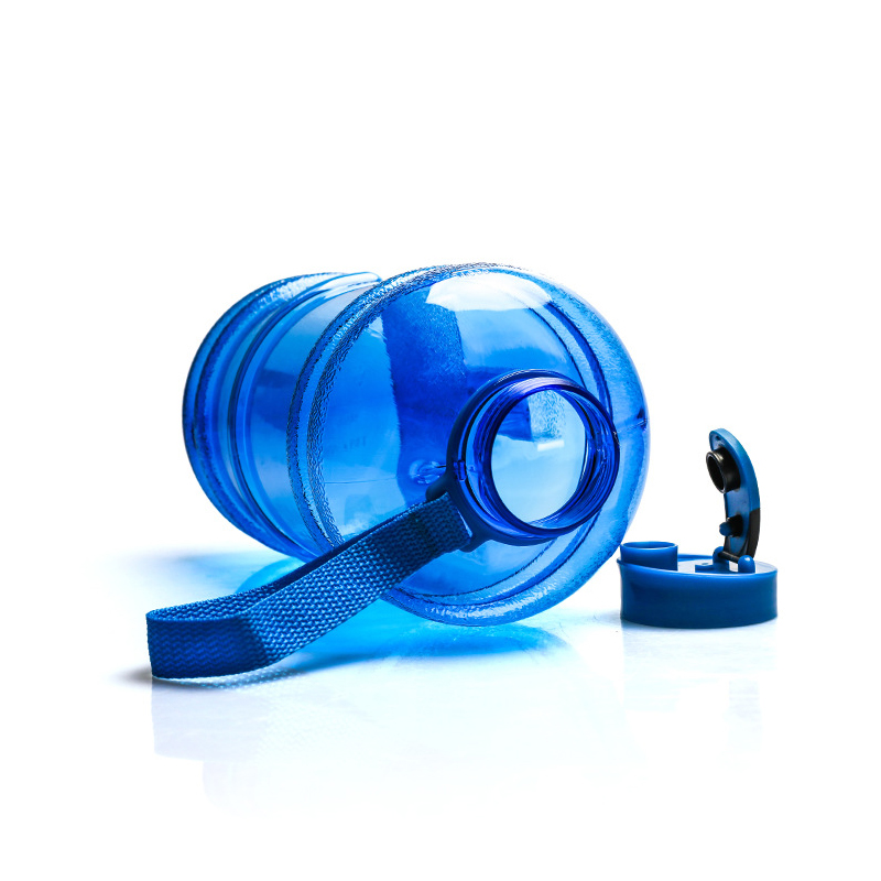 Diese Wasserflasche verfügt über mehrere durchdachte Details. Es ist mit einem haltbaren, gewebten Riemen versehen, sodass es sich leicht transportieren lässt, was praktisch für Outdoor-Aktivitäten oder den täglichen Gebrauch ist. Der Deckel verfügt über ein sicheres Flip-Top-Design; Beim Öffnen gibt es eine weite Öffnung frei, die ein einfaches Befüllen mit Wasser oder das Hinzufügen von Eiswürfeln sowie eine einfachere Reinigung ermöglicht. Der transparente blaue Körper der Flasche sieht nicht nur stilvoll aus, sondern ermöglicht auch eine einfache Kontrolle des Wasserstands.