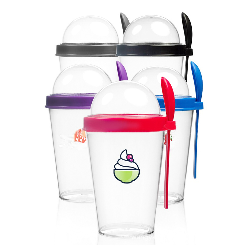 400 ml Haferflocken-/Milchbecher aus Kunststoff mit Deckel und Löffel – tragbarer Frühstücksbecher für Müsli, Joghurt, Salate