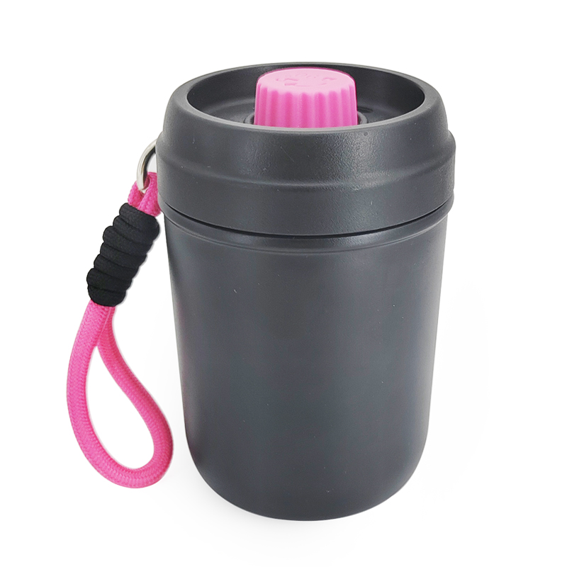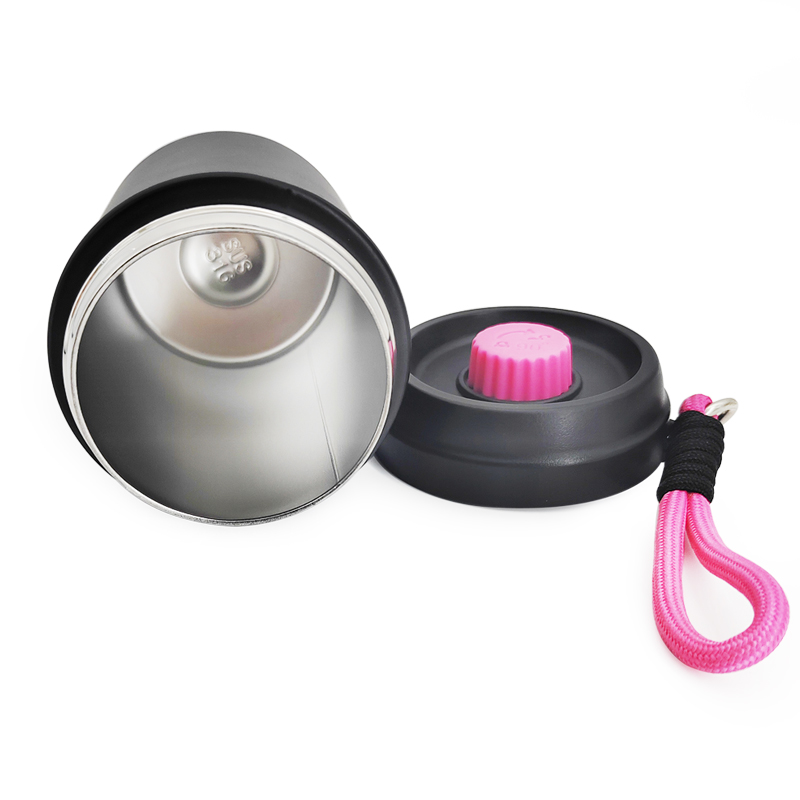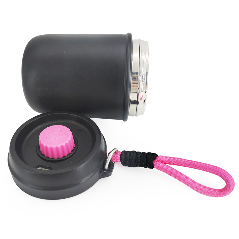 Das Design verfügt über ein minimalistisches und dennoch praktisches Erscheinungsbild und kombiniert eine dunkelgraue Basis mit einem rosa Griff und einem Knopfdeckel sowohl für die ästhetische Attraktivität als auch für die Portabilität. Es bietet aus 304 Edelstahl gefertigt und bietet eine sichere Haltbarkeit mit hervorragenden thermischen Isolationseigenschaften. Der versiegelte Deckel verhindert effektiv Verschüttungen, was ihn ideal zum Tragen von Kaffee während des täglichen Pendels oder zum Speichern von Getränken und Snacks im Freien macht - und liefert sowohl Funktionalität als auch Komfort.