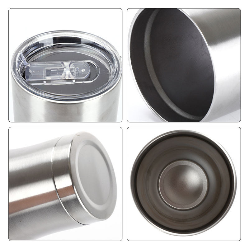 Dies ist eine Nahaufnahme des Inneren des Edelstahl-Isolierbechers. Der Becher besteht aus Edelstahl mit einer glatten Oberfläche, die Flecken und Gerüche nicht leicht zurückhält. Es ist leicht zu reinigen und kann den reinen Geschmack von Getränken besser bewahren. Darüber hinaus ist das Edelstahlmaterial korrosionsbeständig, sicher und gesund in der Anwendung.