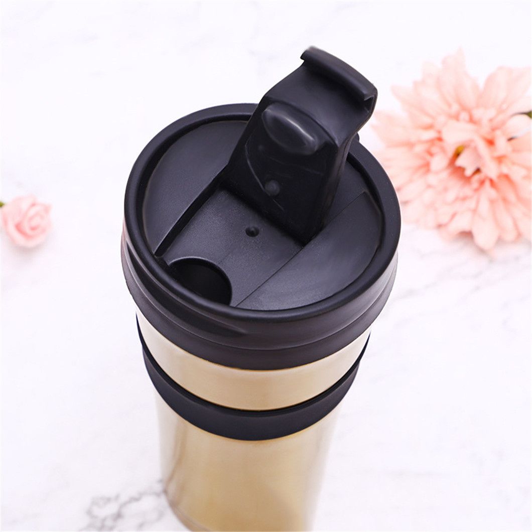 Diese Edelstahl -Thermoskarten sind in Gold-, Schwarz- und Silberflächen mit Anpassungsoptionen erhältlich. Mit einem schlanken schwarzen Deckel und einem haltbaren schwarzen Gummi -Ring in der Mitte, das das Rutschen und die Schütze der Tasse verhindern, ist es perfekt, um Ihre täglichen Getränke wie Kaffee oder heißes Wasser zu tragen.