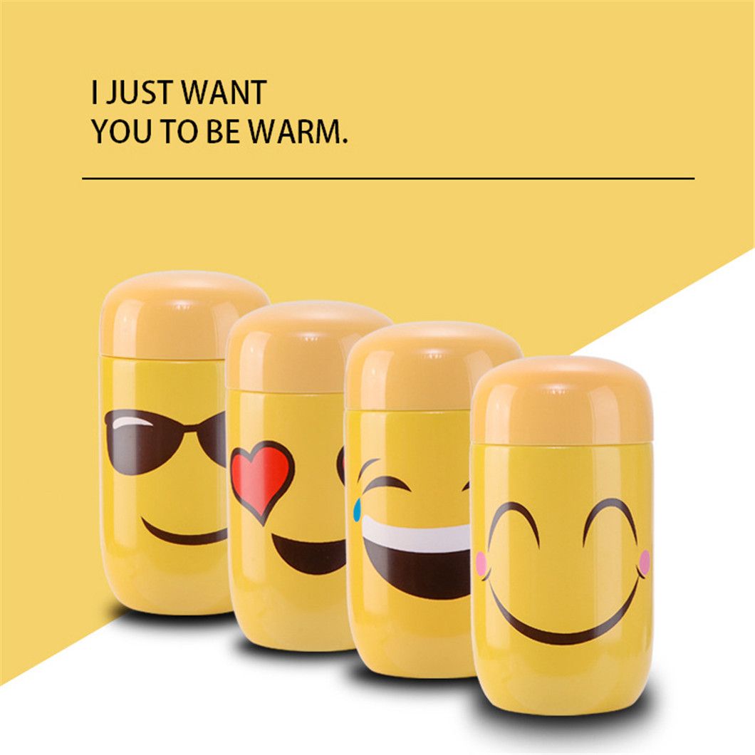 Die niedliche Isolierflasche ist aus robustem Edelstahl 304 gefertigt. Diese vakuumisolierte Wasserflasche aus Metall kann den Inhalt bis zu 6–12 Stunden lang heiß oder eiskalt halten. 200 ml Fassungsvermögen, klein und leicht, kann überallhin mitgenommen werden. Niedliche Thermos-Isolierflasche mit originellem Lächelnmuster, damit das Trinken von Wasser mehr Spaß macht. Hält heiße Getränke heiß und kalte Getränke kalt.