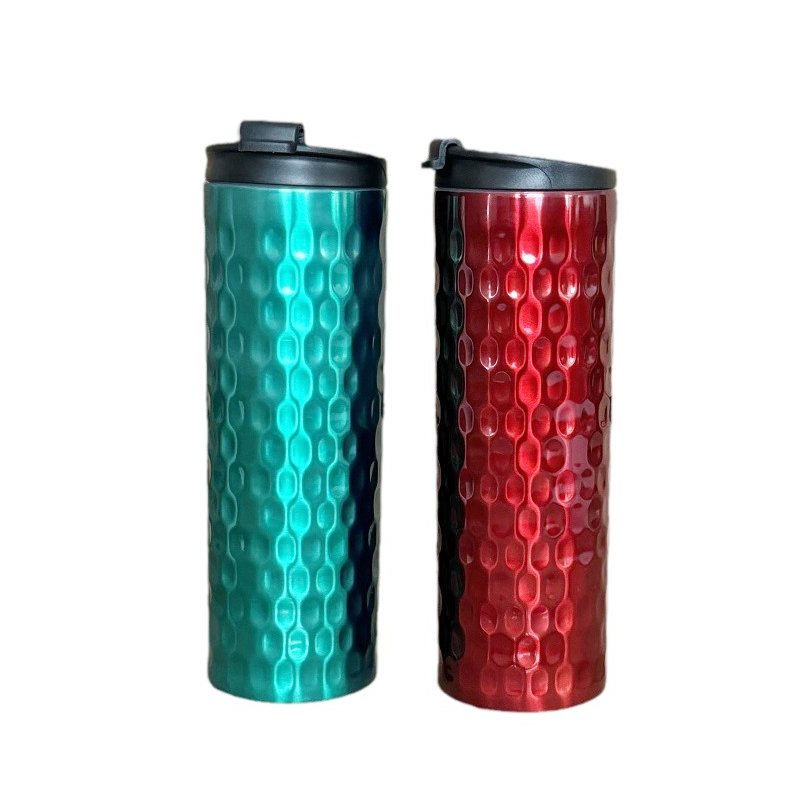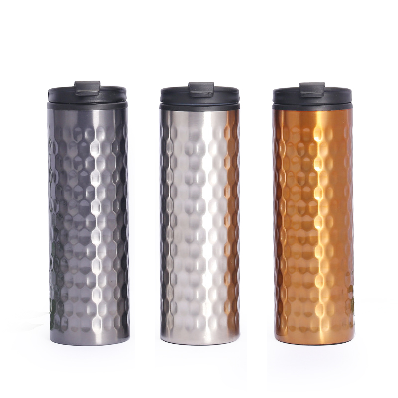 Diese thermische Becher verfügt über ein unverwechselbares Design mit mehreren metallischen Farboptionen wie Silbergrau, Silber und Golden-Brown, die reichhaltige taktile Texturen zeigen. Der Körper verfügt über ein geprägtes Muster, das Waben- oder Hammermustern ähnelt, was nicht nur visuelle Tiefe und künstlerisches Flair verleiht, sondern auch die Grip -Reibung für die einfachere Handhabung verbessert. Kombiniert mit einem minimalistischen schwarzen Deckel erreicht das Design eine raffinierte, aber zurückhaltende Ästhetik, die sowohl für den täglichen Gebrauch als auch für stilvoll genug ist, um sich als schicker Reisebegleiter hervorzuheben.