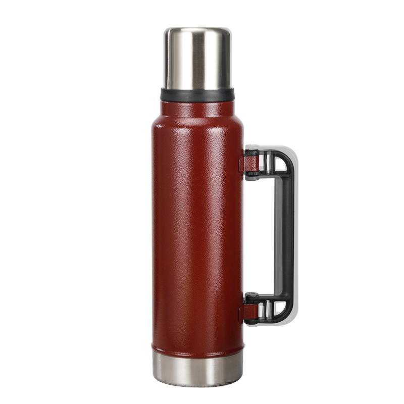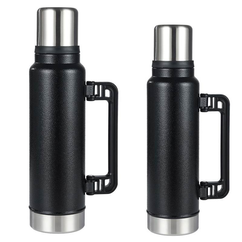 Unsere Vakuumflasche gibt es in mehreren Größen - 1000 ml und 1300 ml, sodass Sie sie einmal mit Wasser füllen und so lange eingestellt werden können, wie lange Sie es brauchen. Der zusammenklappbare Griff erleichtert es einfach, mit Ihnen zu transportieren.